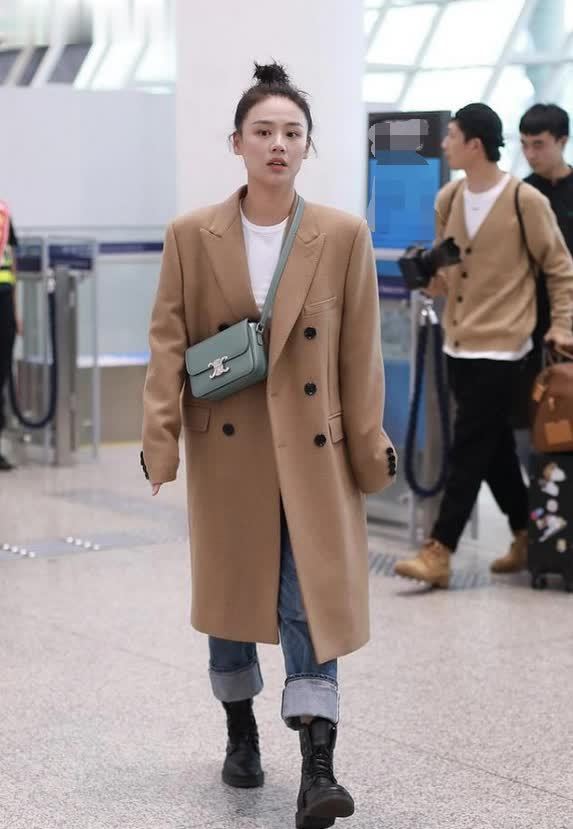 马思纯身高比较高,穿长款大衣就十分有范儿。一件卡其色的外套很有复古风,双排扣大气又帅气。翻边牛仔裤能够增长腿长,下面搭配马丁靴也有增高作用,看起来很苗条。马思纯喜欢绑丸子头,丸子头让人看起来更加清爽,少女感满满。如果脸大的女生想绑丸子头,可以剪一个空气刘海来修饰脸型。