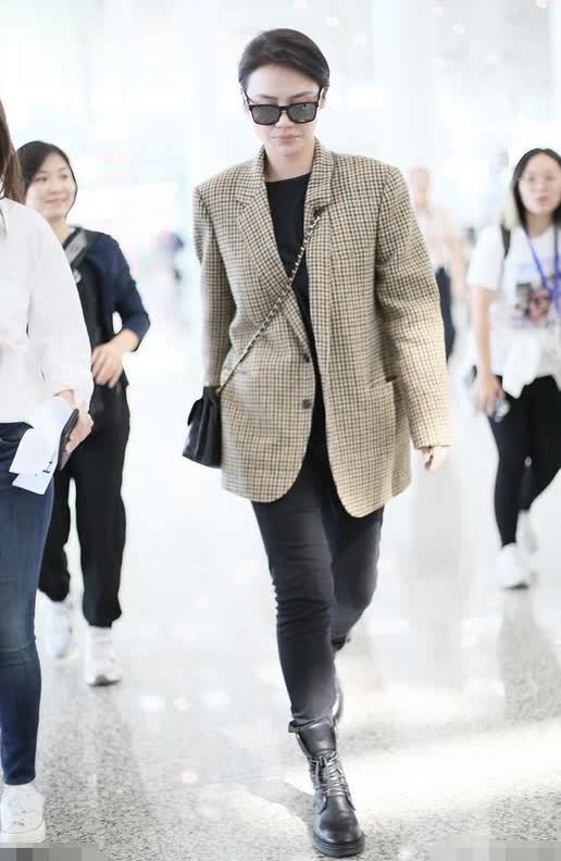 胖了的马思纯也特别有气质,西装外套特别遮肉,是微胖女生的福音。格子元素不会过时,方方正正的格子规矩中不失时髦度。西装领也可以打造一个V领的感觉,显脸小。包包的位置其实也很有讲究,建议把包包背在高腰处,能够制造一个高腰线,拉长身材比例显腿长。